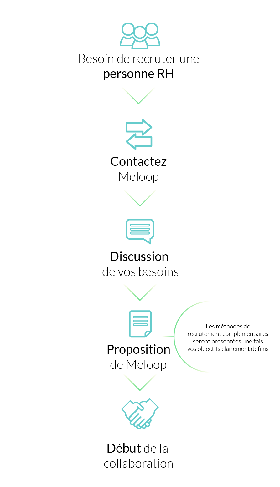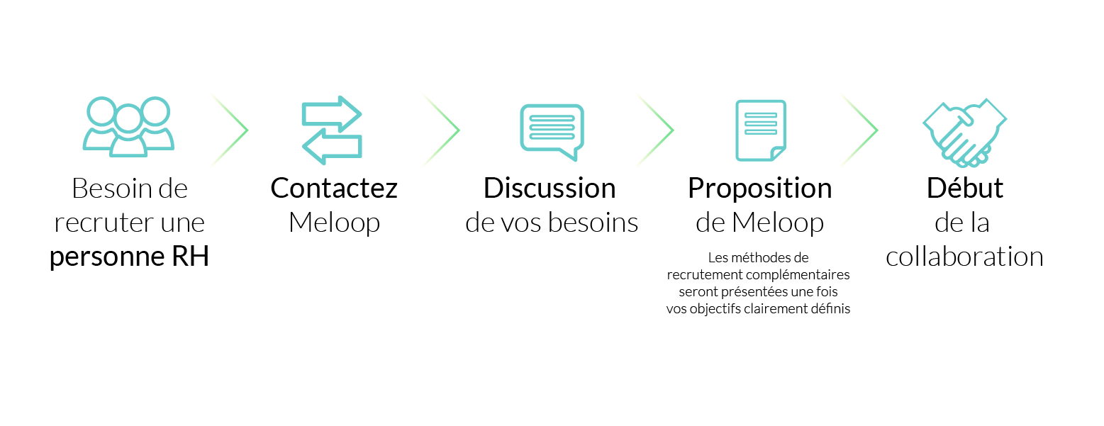 Avec Meloop, bénéficiez d’un processus de recrutement efficace qui vous permettra de trouver les professionnels RH les plus adaptés à votre organisation. En gérant nos opérations de recrutement pour des postes RH dédiés, vous confiez le recrutement et le sourcing à un expert RH.