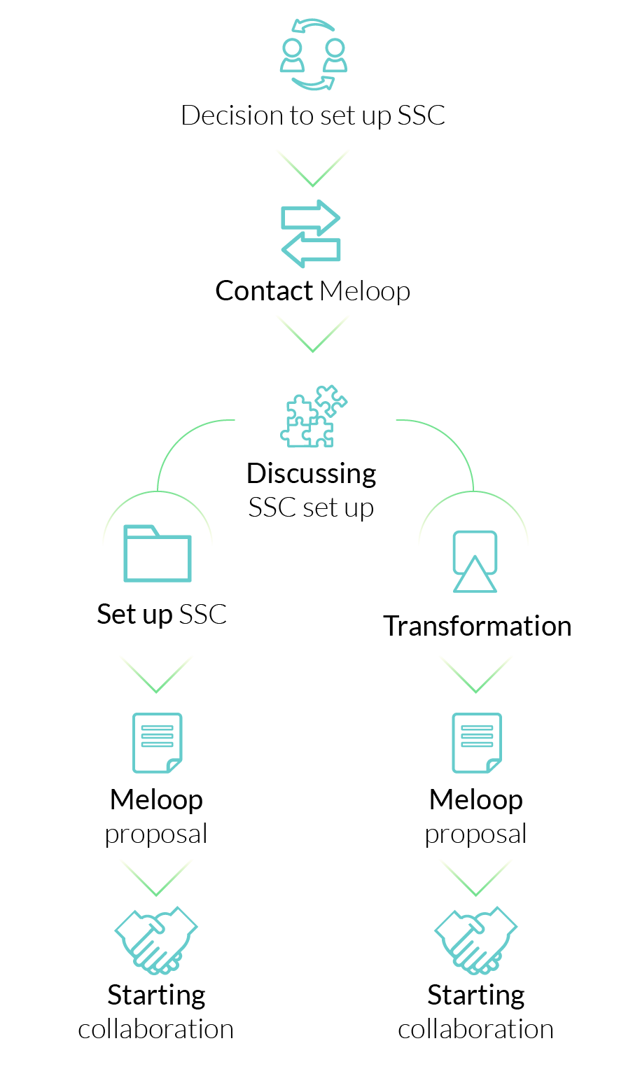 Meloop assists you in implementing an HR Center / SSC within your company by supporting legal entity setup, establishing an efficient organizational structure, recruiting top talent, designing processes, integrating SLAs and KPIs, ensuring effective knowledge transfer and procedures, as well as providing change management support throughout the transition.